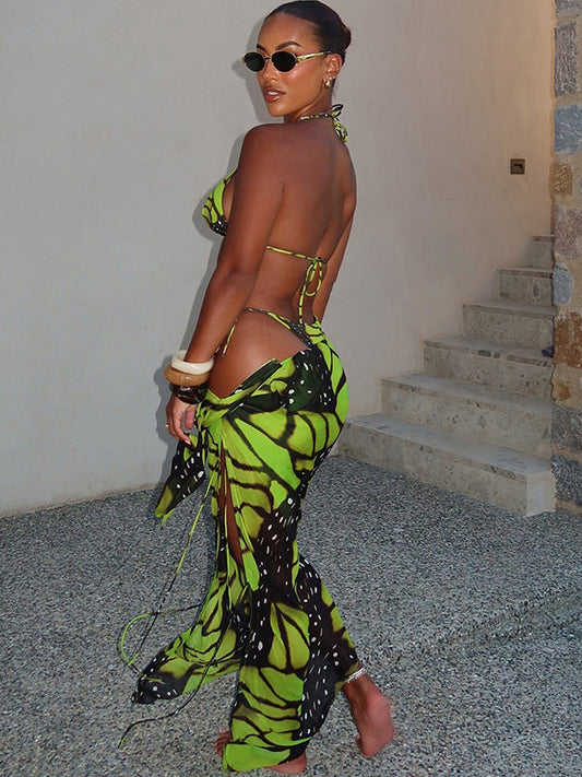 Luna Dames Sexy Tie-dye Vlinderprint Mesh 3-delige Bikiniset